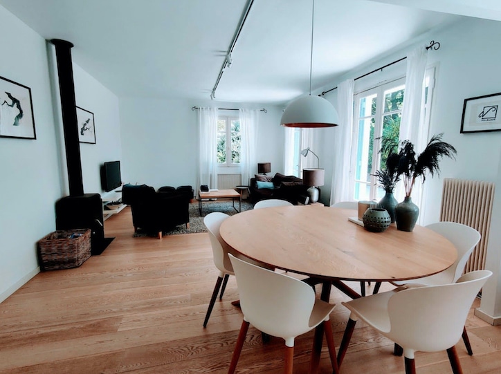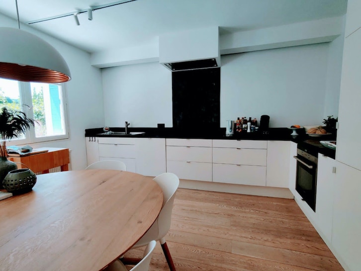 In de villa vind je een lichte, moderne woonkamer met houtkachel. Daarnaast is er een open keuken die van alle gemakken is voorzien. Het huis heeft 3 slaapkamers (waarvan één met en suite douche) en nog een aparte badkamer. Buiten op het terras geniet je van de zon en neem je tussendoor een verkoelende duik in het privézwembad. Ook is er een green egg bbq, een trampoline en een pingpong tafel.